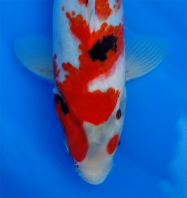 Hetzelfde pas ik bijvoorbeeld ook met Kumonryu toe. Wanneer deze ineens al het zwart verliezen (in de buitenvijver) zet ik de vis meteen naar een binnenverblijf. In de meeste gevallen komt dan gewoon het zwart weer terug. Op het moment dat de vis dan weer zijn zwart terug heeft gekregen zet ik hem weer in een buitenvijver. Vaak komt er dan overigens ook zwart op plekken bij die voorheen geen zwart hadden. Voor wat betreft het opkomen van Sumi kijk ik altijd eerst naar de buitenste randen van de schubben. Als deze randen grijs zwart zijn, zal de schub deze tendens volgen en helemaal zwart inkleuren. Eerst wordt dan de aanzet donkerder en daarna volgt de rest van de schub. Toen ik dit voor het eerst ontdekte en opschreef ging ik hier ook veel meer op letten.