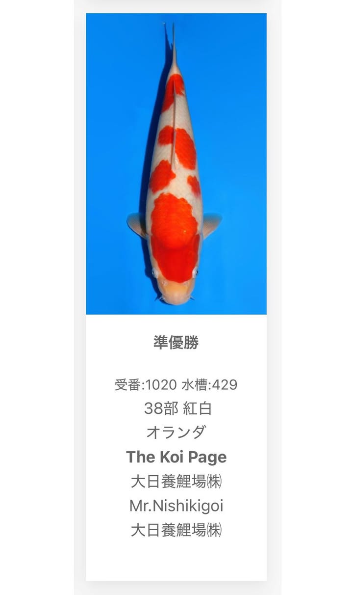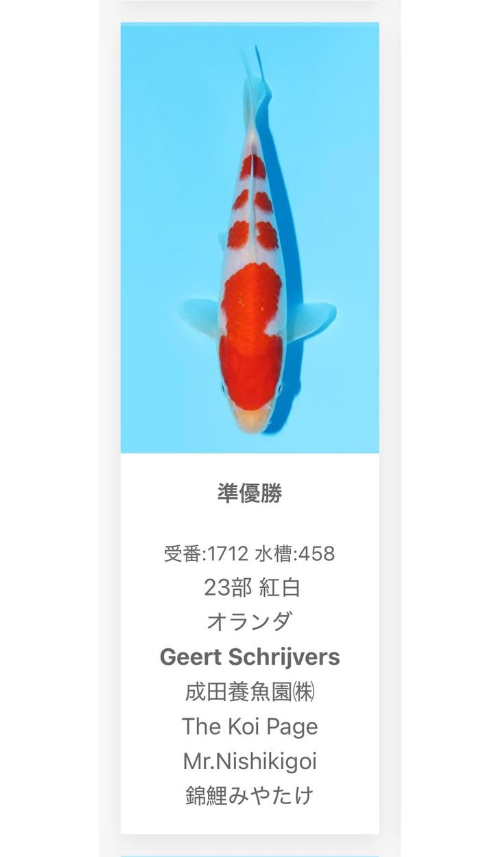 - Geert Schrijvers – Runner-Up 23BU Kohaku (Miyatake Nishikigoi / Narita Koi Farms)