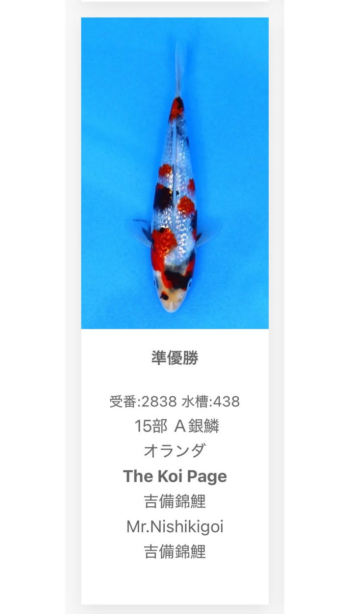 Ben Smit commented enthusiastically on his double achievement, “Very happy with the two second places at the All Japan Young Koi Show. Both koi purchased from The Koi Page through Mr. Nishikigoi. A beautiful tosai Ginrin Showa from Kibi Koi Farm and a Karashi Asagi from Taniguchi Koi Farm. The Kibi Showa also previously won at the All Japan Koi Show in January and we hope to follow up at the 12th International Junior Koi Show in Ojiya in April.”