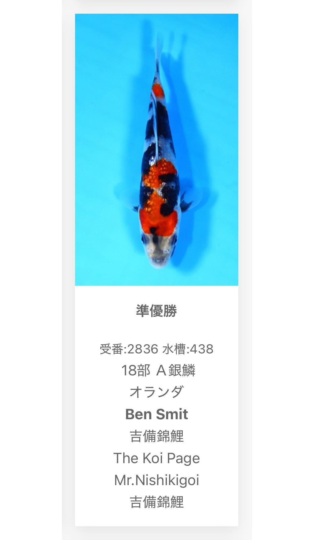 - Ben Smit – Runner-Up 48BU Kawarigoi (Taniguchi) AND 18BU GinrinB (Kibi Nishikigoi)