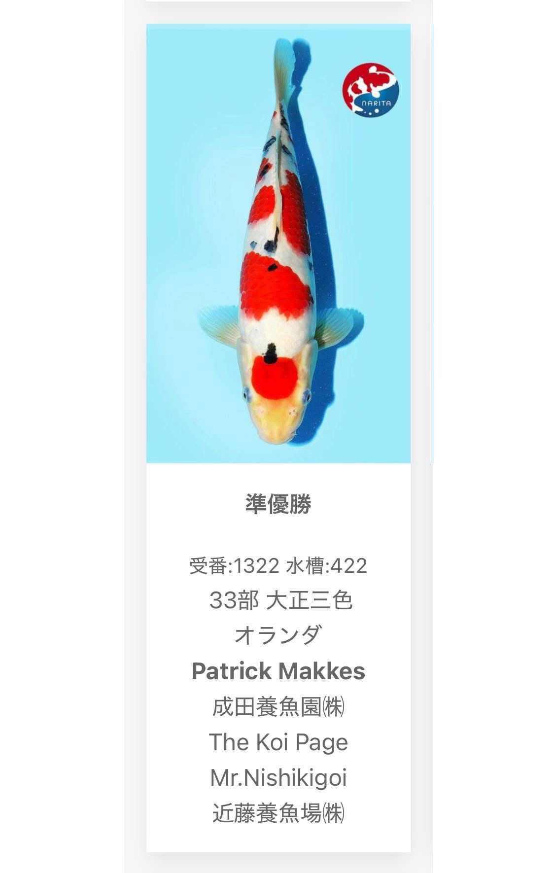 - Patrick Makkes – Runner-Up 33BU Sanke (Kondo / Narita Koi Farms)