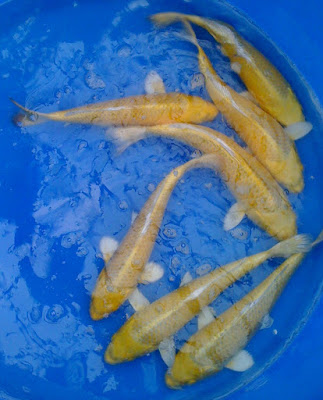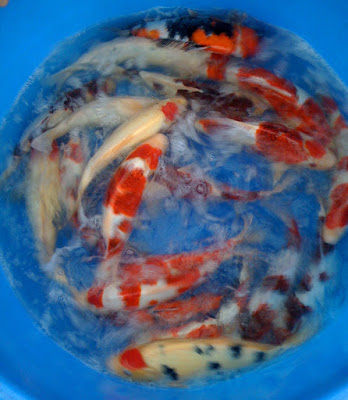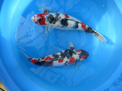 Kohaku en Yamato Nishiki. Hier hebben zowel Rob als Ronald en Joachim elk een doos koi gekocht. De een met Yamabuki de ander met