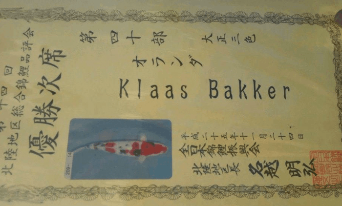 Voor het eerst naar Japan gaan, een Koi mee laten doen op een Koi show en meteen met een prijs aan de haal gaan om de vis meteen daarop te emigreren naar Zuidbroek. Tijdens de uitslag was eigenaar en hobbyist Klaas Bakker zelf al weer op weg naar huis. Een hit & run en een interview waard.
