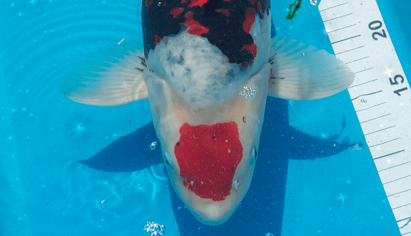 Uitleg Shigeru: Veel mensen zouden deze Koi onderschat hebben. Deze Showa heeft erg goede potentie en dat zal men in de toekomst kunnen zien wanneer het Sumi gaat doorkomen. Hierdoor zal de Koi een totaal andere look krijgen en compleet veranderen in positieve zin.