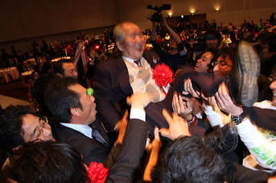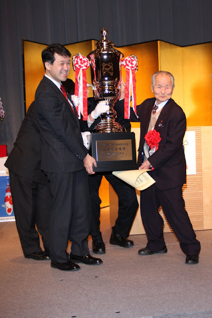 Ondanks zijn leeftijd heeft Kato-san geen probleem met het heffen van deze trofee :).