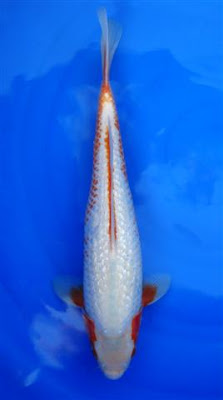Sommigen zullen hem meteen herkennen, voor anderen is het de introductie van iets nieuws. De Yuki Asagi, zichtbaar toepasselijk vernoemd naar het witte wintergoed dat ‘sneeuw’ heet, werd door KoiQuest al eerder geïntroduceerd op de Nishikigoi Novelle en wel hier.